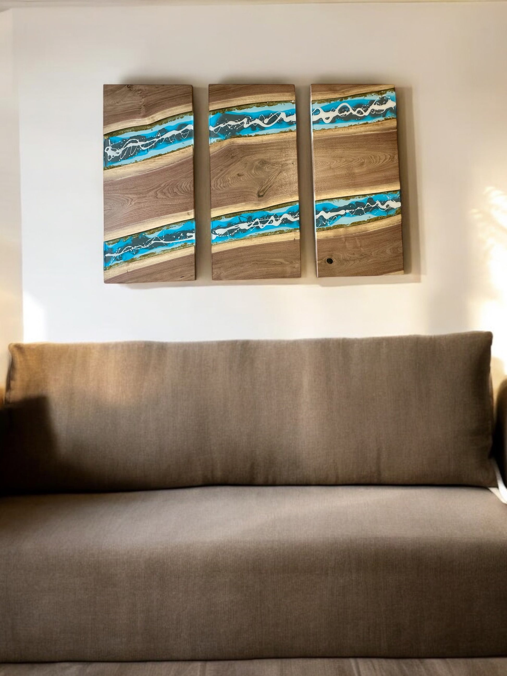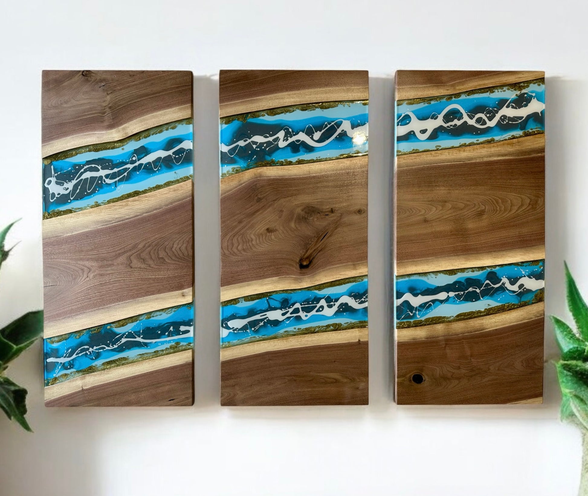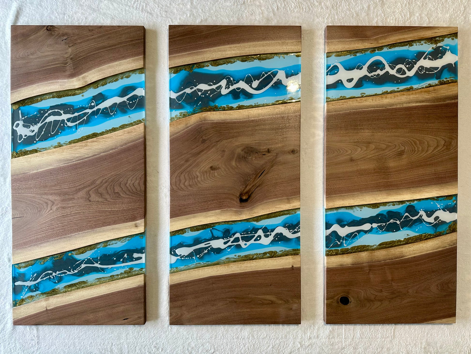 Live-edge Black Walnut & Epoxy Triptych- Wall Art
